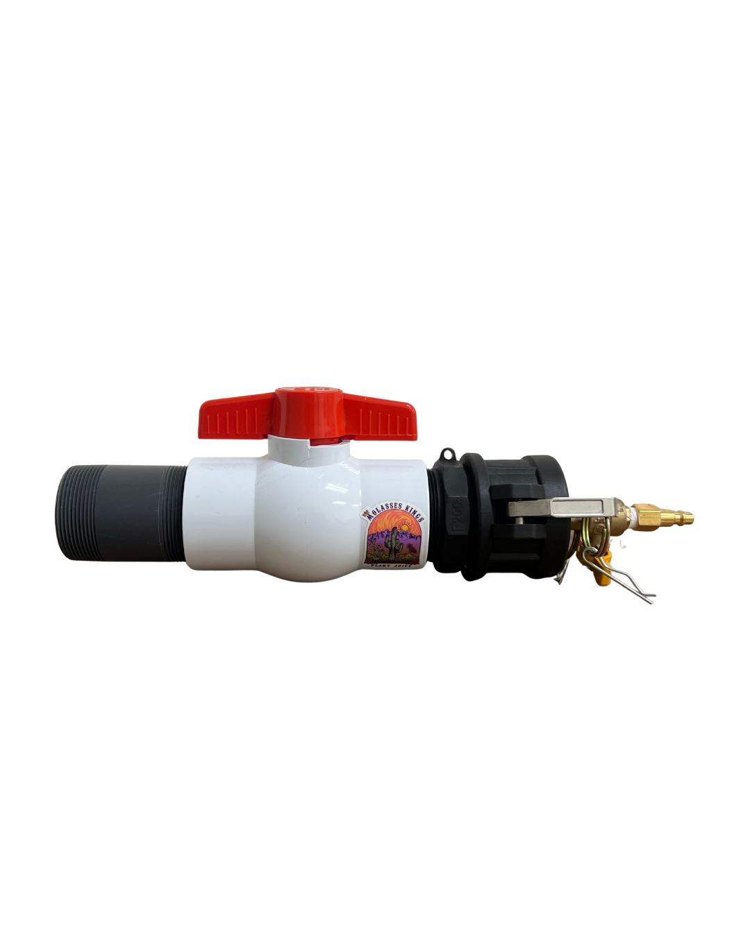 Always give your jug of Molasses Kings Plant Juice a good shake before using! But if you’re working with large acreages and find tote or drum packaging the most cost-efficient option, our Jug Shaker makes mixing just as easy. Simply connect the camlock fitting to your tote or drum. When using a drum on a rack, switch to the additional fitting provided. Attach a portable air compressor to the correct fitting, then vent the tote or drum through the top opening. Blast air into the Plant Juice for 10–20 seconds—just like shaking a jug!